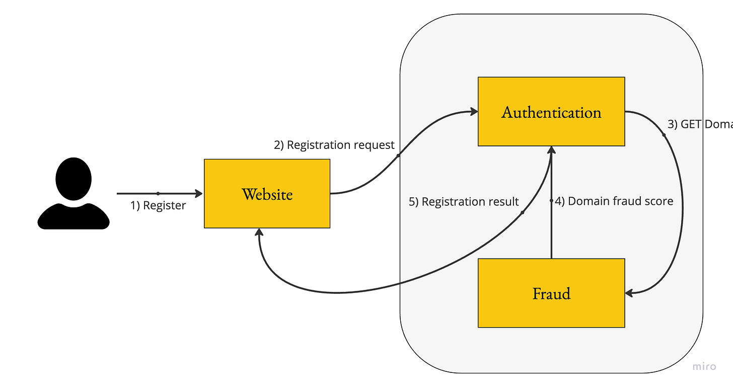 Availability Issues: The registration flow is dependent on the Fraud service. The team must handle cases where the Fraud service is unavailable or slow to respond.
